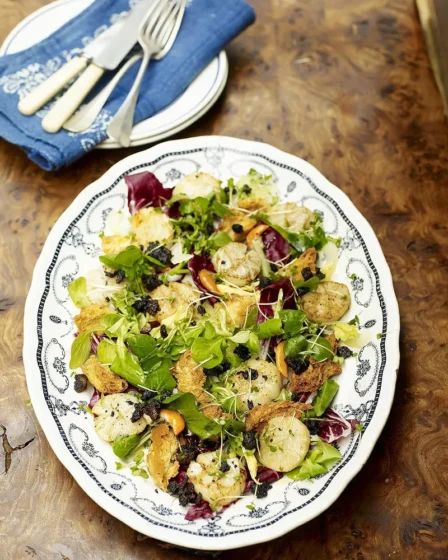 Scottish scallops and black pudding with winter salad